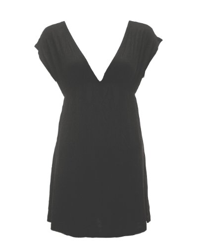 Ladies Black Deep V-Neck Tunic Dress, Elastic Waist Band Review